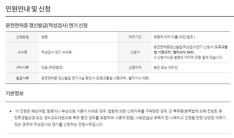 세부적인 운전면허증 갱신 발급 방법에 대해서는 아래와 같습니다. 기본적으로 정부 24에서는 갱신발급 연기 신청을 수행하는 것을 기본으로 하고 있습니다.