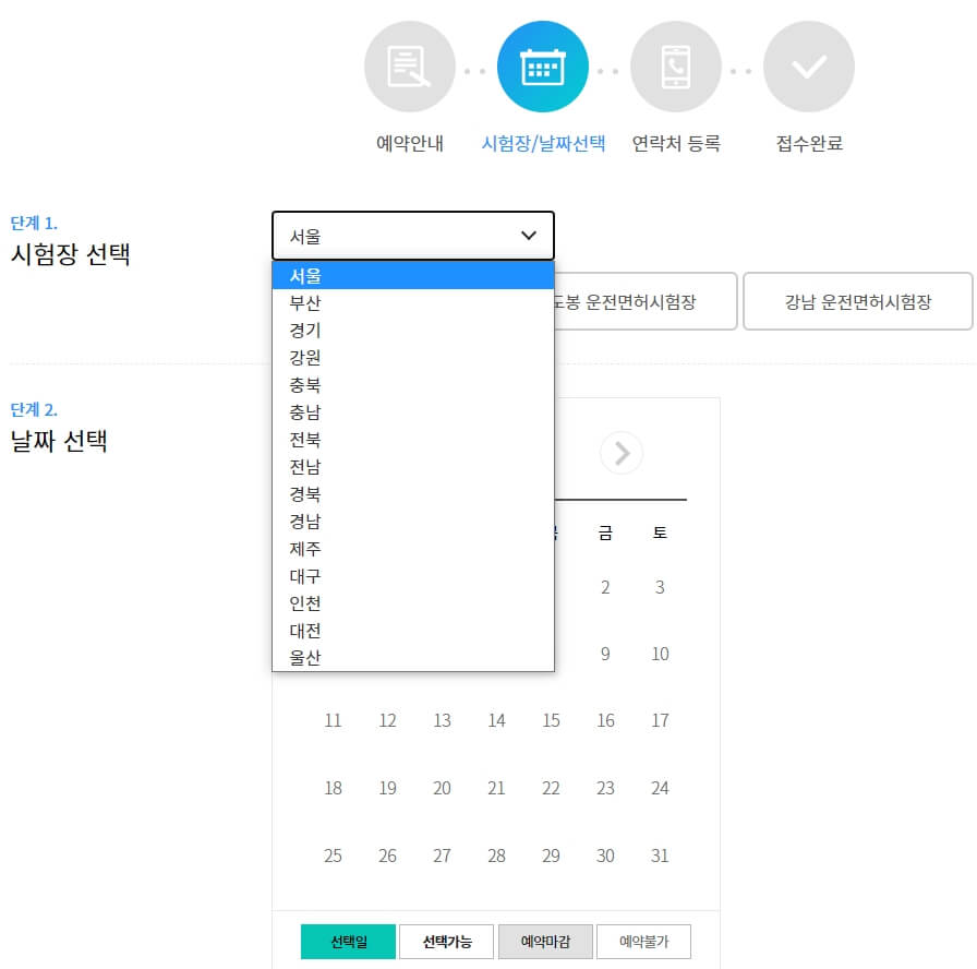 가장 중요한 단계라도 판단됩니다. 운전면허 필기시험 접수에 가장 중요한 것은 어디서, 언제 응시하는 것을 선택하는 단계 입니다.