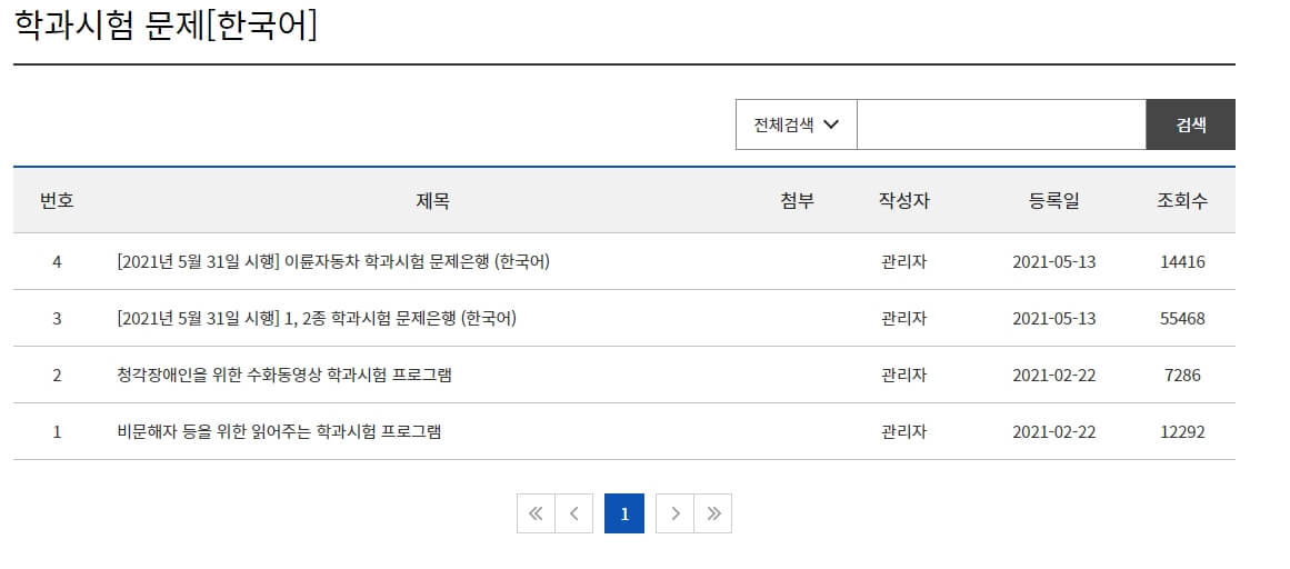 해당 서비스는 향후에 활용하도록 하겠습니다. 우선 여기서 "학과 시험 문제은행" 메뉴를 클릭해주세요. 그렇다면 예상문제를 무료로 받을 수 있는 게시판 형태에 페이지로 이동합니다.