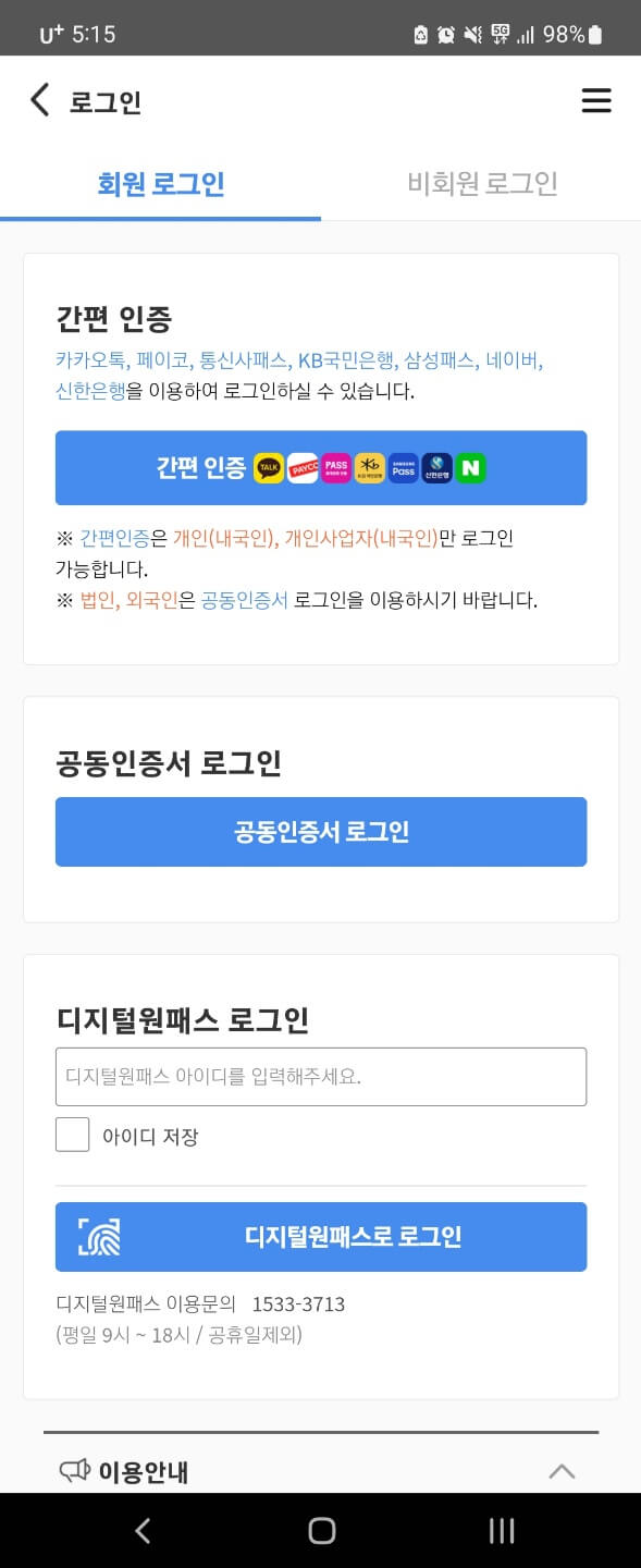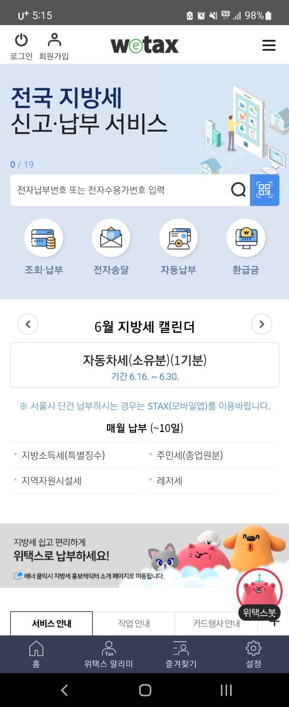 어플 다운로드가 싶다면, wetax 공식 홈페이지에 접속하셔도 진행해도 무관합니다. 단지 해당 서비스를 이용하기 위해서는 회원 가입 또는 간편 인증을 통해서 로그인 절차를 수행해야 합니다.