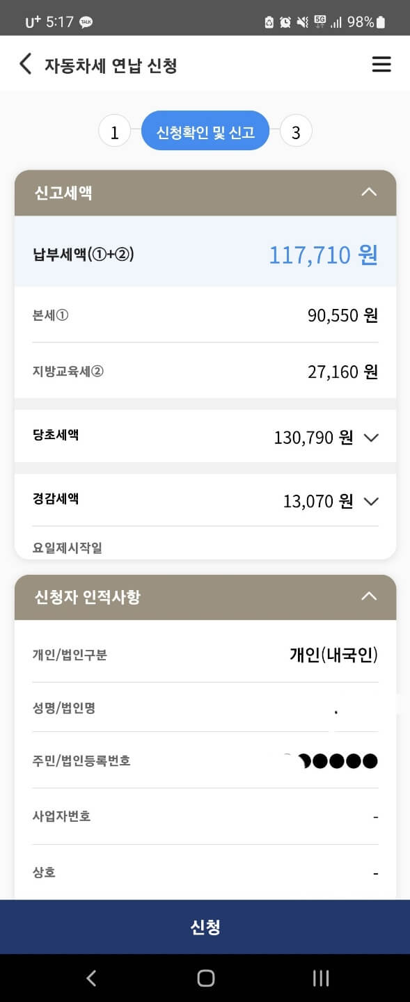 4. 자동차세 연납 신청 신고를 진행해주세요.