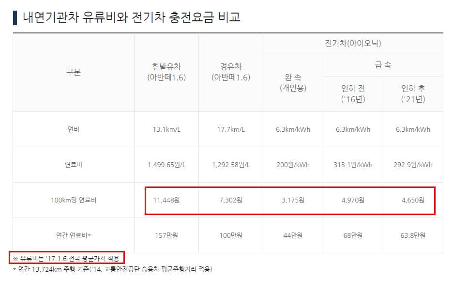 휘발유차와 전기차 아이오닉 기준으로 보면 거의 2배 이상 차이가 나는 것 같습니다. 이래서 전기차를 구매하나봅니다. 전기차 구매하는 비용이 처음에는 다소 부담이 될 수 있지만 보조금 지원도 가능하니, 좀 더 정보를 확인해봐야겠습니다.