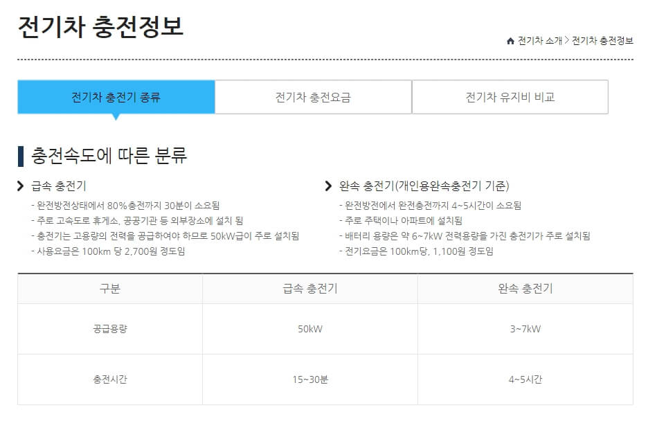 여기서 궁금한 점이 하나 있습니다. 전기차에 대한 확실한 정보는 어디서 확인해야하는가 입니다. 정확한 정보가 가장 중요한 시대이기 때문에, 공식 기관에 홈페이지를 활용하는 것을 권장드립니다. 해당 홈페이지에 전기차 충전요금 부터 다양한 정보를 확인 할 수 있습니다.